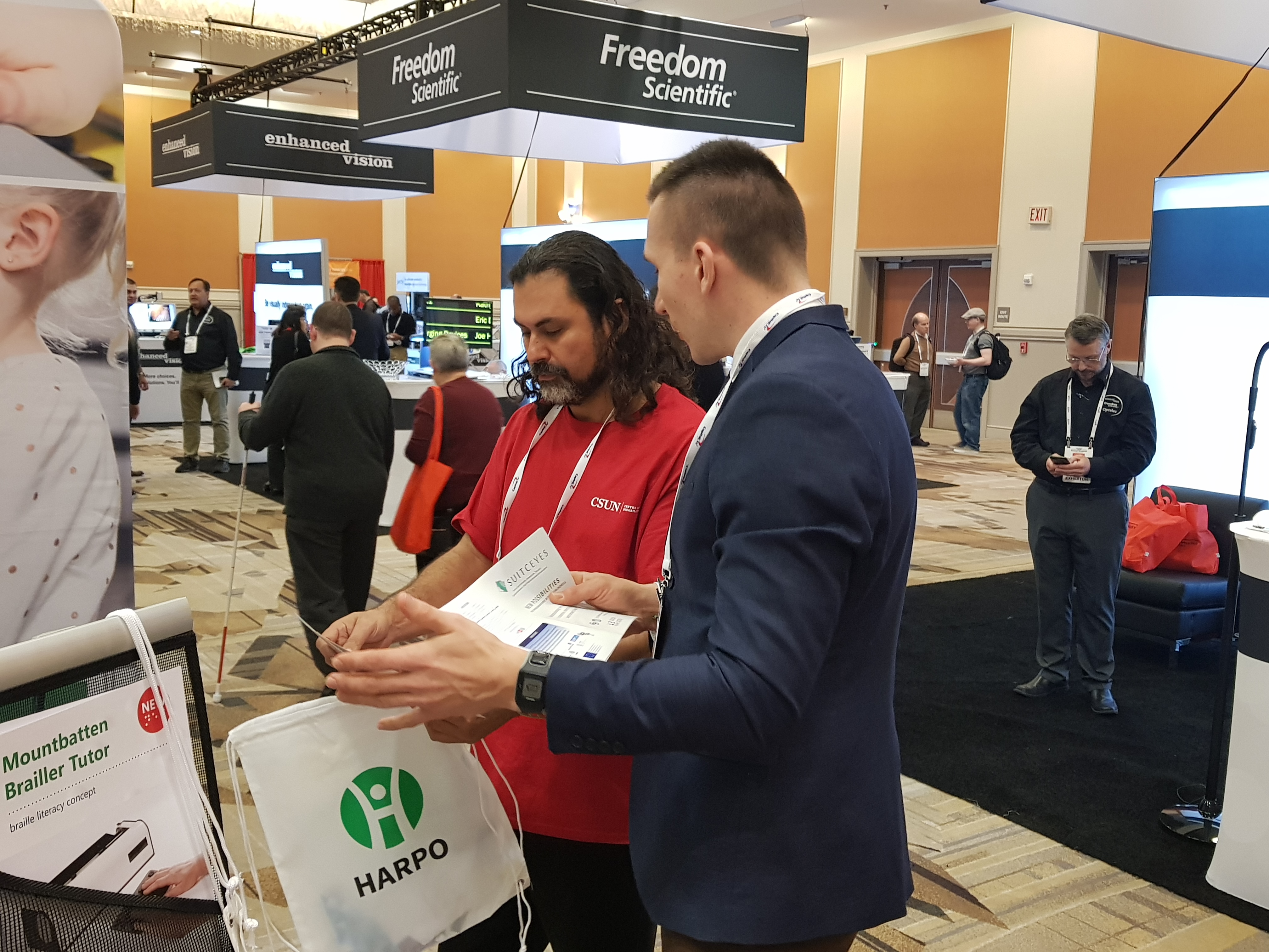 On March 11-15, 2019 Harpo participated in the 34th CSUN Assistive Technology Conference in Anaheim, USA. We presented SUITCEYES on the project stand during the whole event and presented the paper Sensor technology, gamification, haptic interfaces in an assistive wearable submitted to the Journal on Technology & Persons with Disabilities on March 14 (Session information).