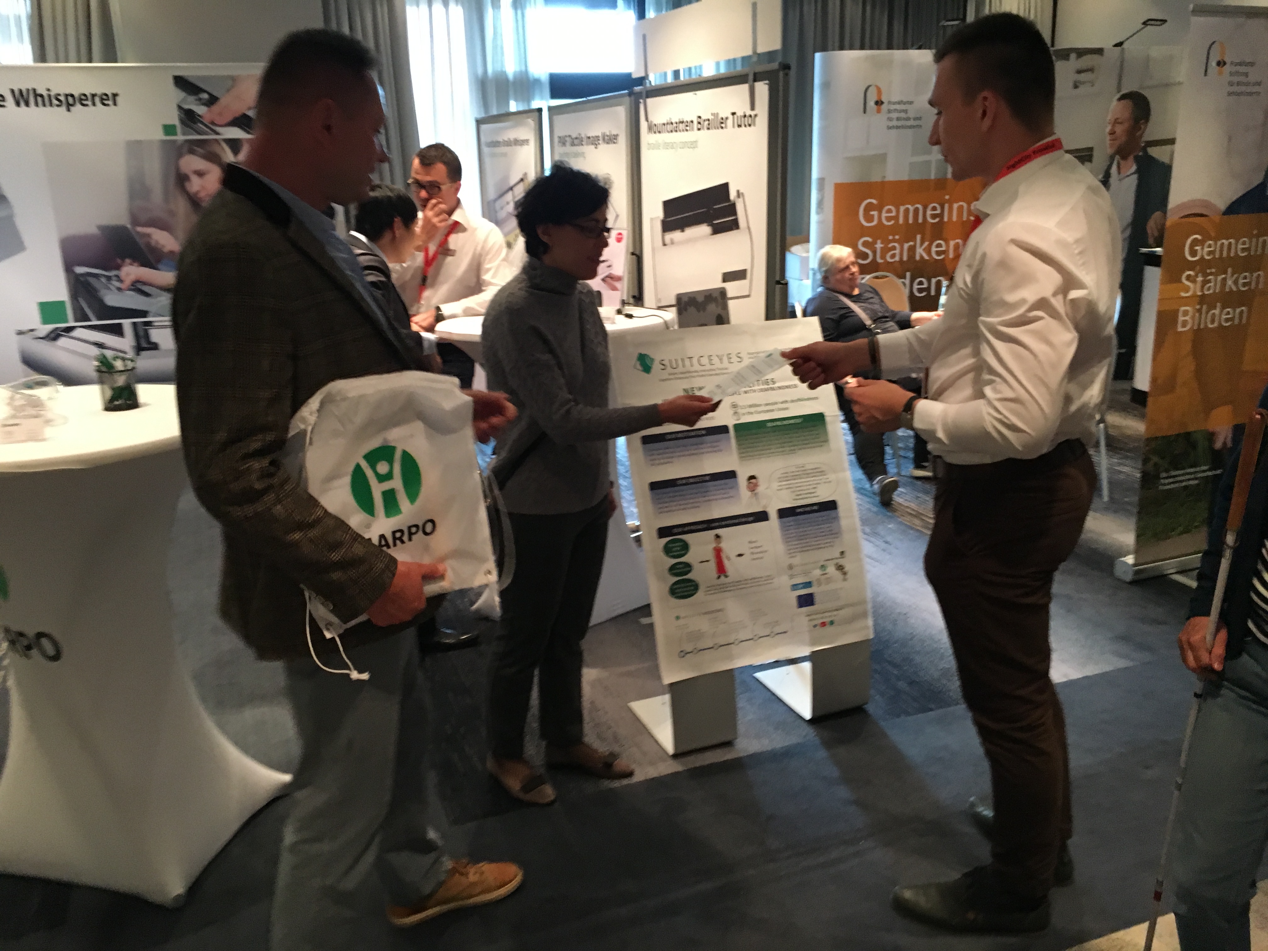 Harpo participated in SightCity Frankfurt . It is the biggest, annual exhibition for aids for the visually impaired. Together with many other manufacturers from all over the world, who present novelties and well-established products of their product range, Harpo promoted the developments of the SUITCEYES project. In 2019 135 exhibitors and about 3800 visitors were present at the fair.